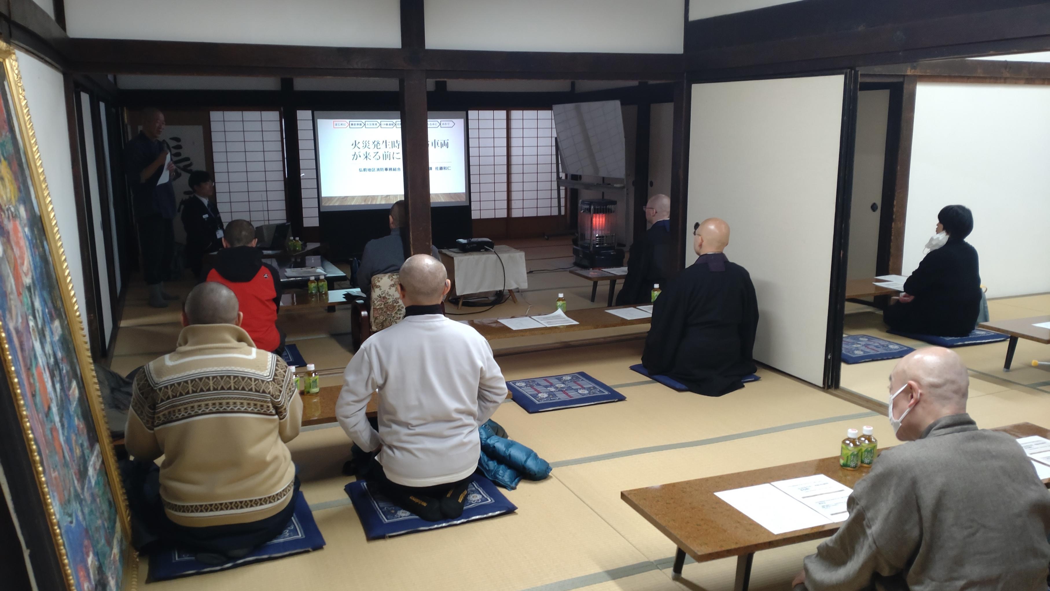 2024/2/20 | 第6部会総会及び研修会を実施! 令和6年2月8日(木)、防災協会第6部会において、弘前地区消防事務組合消防本部予防課の稲部主幹を講師にお招きし、「文化財の建築物の防火対策」について勉強会を開催しました。 過去の文化財等の火災では、令和元年10月31日に発生した沖縄那覇市にある首里城跡の火災が記憶に新しいところですが、全国的に文化財等の火災は毎年発生しているそうです。 火災を発生させないための予防対策をはじめとして、防火訓練マニュアルについて詳しくご講義いただき、今日学んだことを、日頃の訓練に生かして、火災予防に努めていきたいと考えております。 ![]() ![]() 部会長の長勝寺様、ありがとうございました。第6部会の皆様、お疲れさまでした。 |