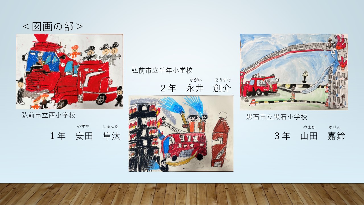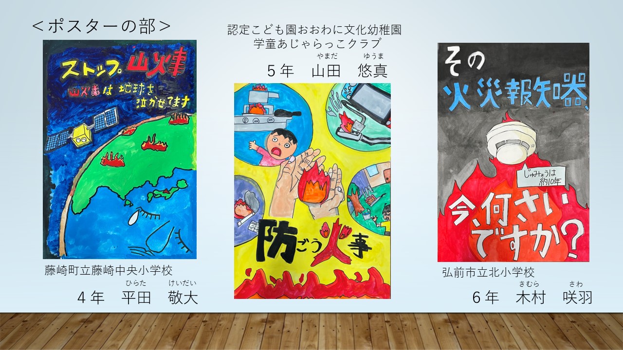 認定こども園おおわに文化幼稚園 学童あじゃらっこクラブ 4学年 木田 凪咲 | 弘前市立第三大成小学校 5学年 宮﨑 碧大 | 弘前市立豊田小学校 6学年 鈴木 沙愛 |